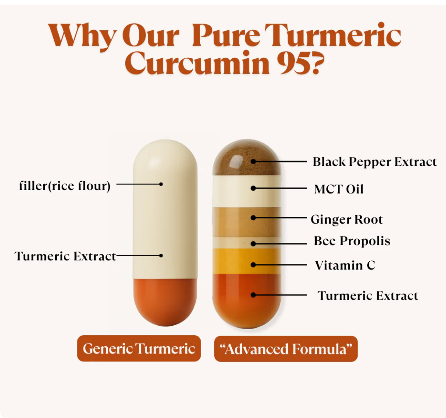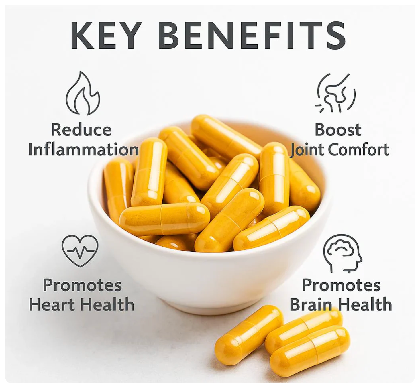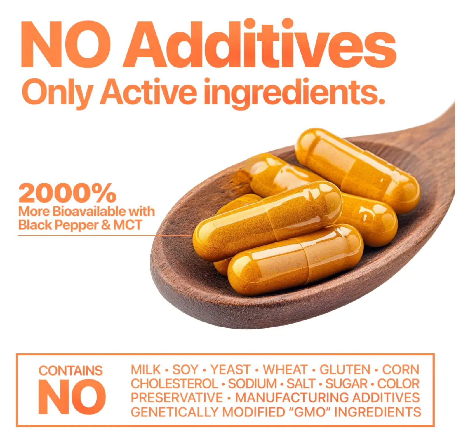 Answer 1: These capsules are designed to support joint health, reduce inflammation, and enhance overall well-being. They contain potent turmeric extract to combat joint discomfort, BioPerine to improve absorption, and additional ingredients like MCT oil, ginger, and Vitamin C that contribute to energy, immune support, and gut health.